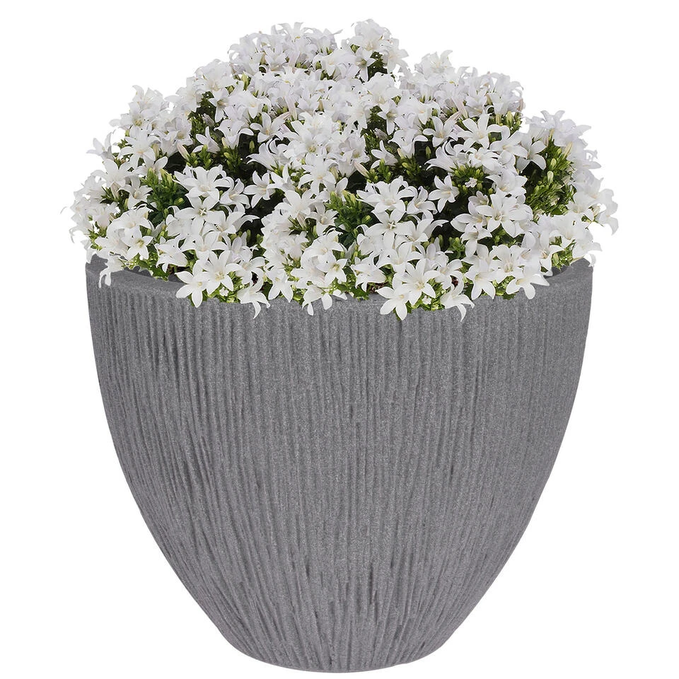 Deze ronde bloempot heeft een uniek geribbeld lava design en past perfect in elk huis, terras en tuin. De bloempot is gemaakt van kunststof, wat niet alleen langer meegaat, maar ook nog eens voor het lichte gewicht zorgt. Dit zorgt ervoor dat de bloempot makkelijk te verplaatsen is en voor langere tijd een plekje in uw huishouden kan verzorgen.