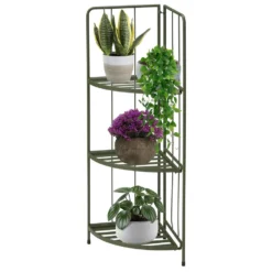 Pro Garden plantenrek of plantentafel met 3 planken geschikt voor buiten gebruik, geef je tuin of balkon een mooie uitstraling met dit plantenrek. De plantentafel is zeer stevig en stabiel waardoor je zonder problemen je plantenpotten erop kan zetten en het ziet er ook nog eens mooi en elegant uit. Het plantenrek is inklapbaar waardoor je deze kan makkelijk kan opbergen. Kleur: groen. Materiaal: metaal. Afmeting: 42 x 30 x 90 cm. Afmeting opgevouwen: 42 x 8 x 90 cm.