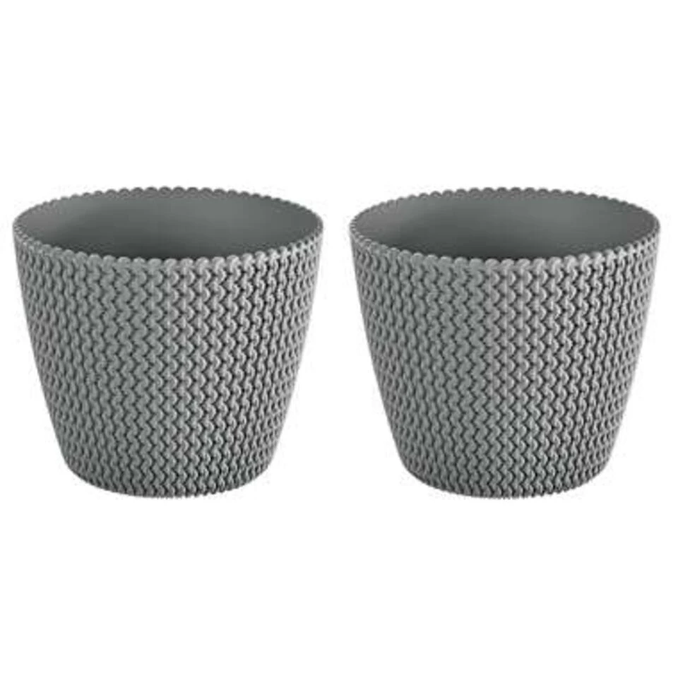 1x Kunststof Splofy bloempotten/plantenpotten lichtgrijs 30 cm. Kras en stootvaste bloempot/plantenpot met de uitstraling van zachte, grof gebreide wol. Formaat: diameter bovenkant: ca 29,5 cm. Hoogte: ca. 24,9 cm. Materiaal: kunststof. De potten zijn geschikt voor binnen en buiten gebruik.