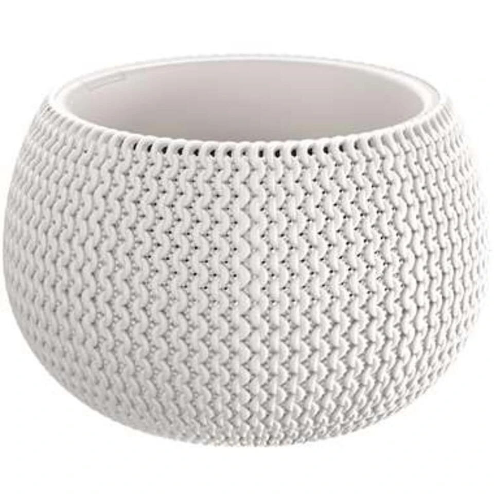 1x Stuks ronde witte Splofy bloempotten/plantenpotten 4 liter. Kras en stootvaste bloempotten/plantenbakken met de uitstraling van zachte, grof gebreide wol. De bloempotten/plantenpotten hebben geen afwateringsgaten. De bloempotten/plantenpotten zijn geschikt voor binnen en buiten gebruik. Serie: Splofy bowl. Formaat: diameter: ca 29 cm. Hoogte: ca 19,5 cm. Inhoud: 4 liter. Materiaal: kunststof. Tuin/woonkamer decoratie bloempot/plantenbak.