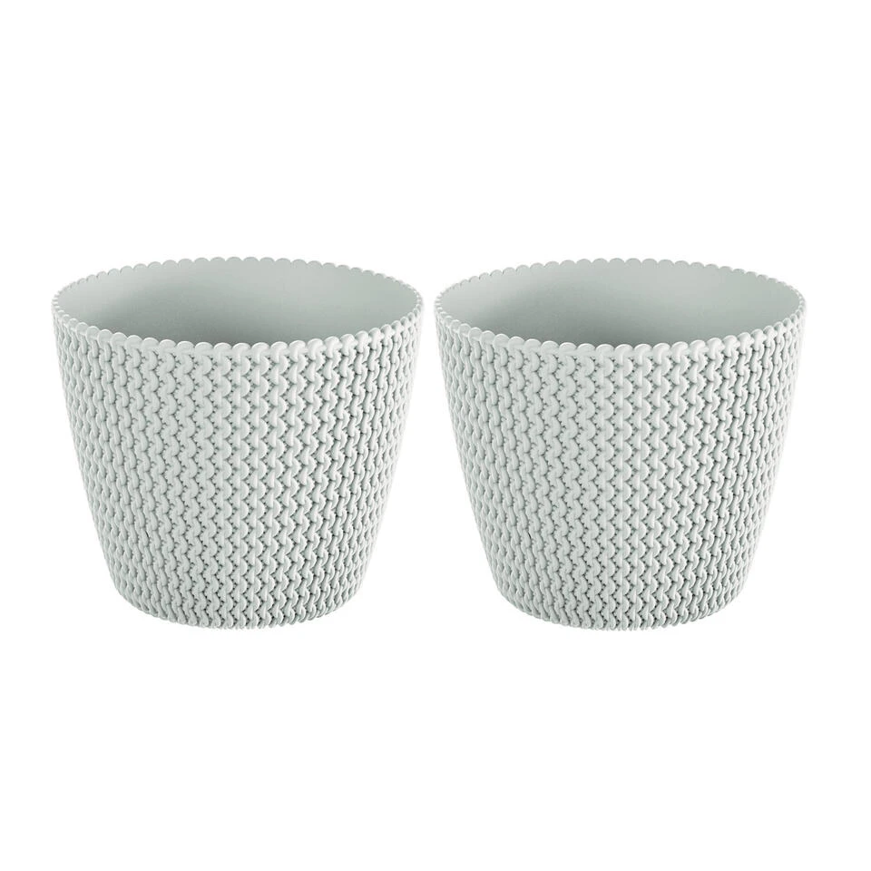 1x Kunststof Splofy bloempotten/plantenpotten wit 40 cm. Kras en stootvaste bloempot/plantenpot met de uitstraling van zachte, grof gebreide wol. Formaat: diameter bovenkant: ca 39,1 cm. Hoogte: ca. 33 cm. Materiaal: kunststof. De potten zijn geschikt voor binnen en buiten gebruik.