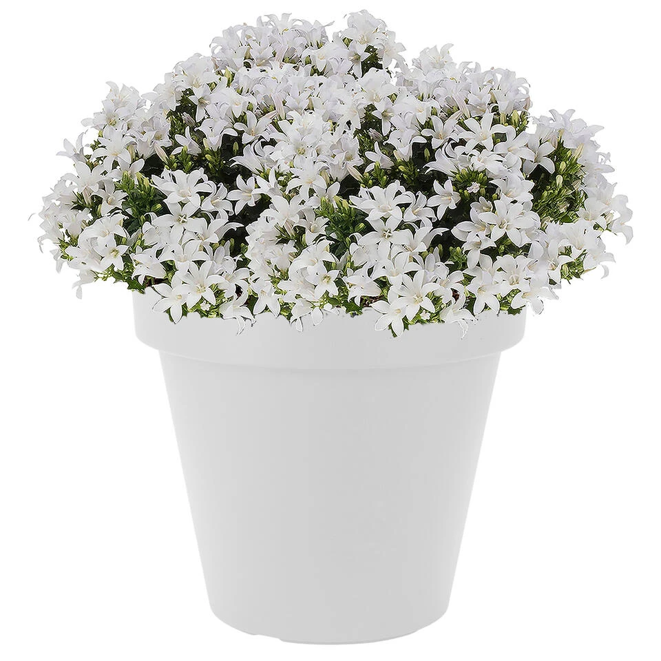 1x Witte bloempotten 25 cm. Formaat: diameter bovenkant: ca 24,5 cm. Hoogte: ca. 22,5 cm. Materiaal: kunststof. De bloempotten hebben geen gat in de bodem waardoor het overtollige water wegloopt, deze kunt u wel zelf maken. De potten zijn geschikt voor binnen en buiten gebruik. Bloempotten/plantenpotten voor tuin, terras,balkon of woning.