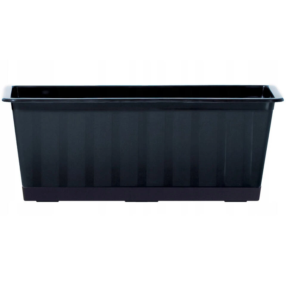 1x Antraciet kunststof Agro plantenbakken/bloembakken 40 cm. Serie: Agro. Kras en stootvaste rechthoekige bloembak/plantenbak met een subtiele reliefopdruk. Formaat: Breedte ca 40 cm. Lengte: ca 18 cm. Hoogte: ca 14 cm. Materiaal: Kunststof. De bloembakken/plantenbakken zijn geschikt voor binnen en buiten gebruik. De bakken kunnen op de balkonleuning worden gemonteerd of op de vloer/vensterbank worden geplaatst. Exclusief balkonhaken.