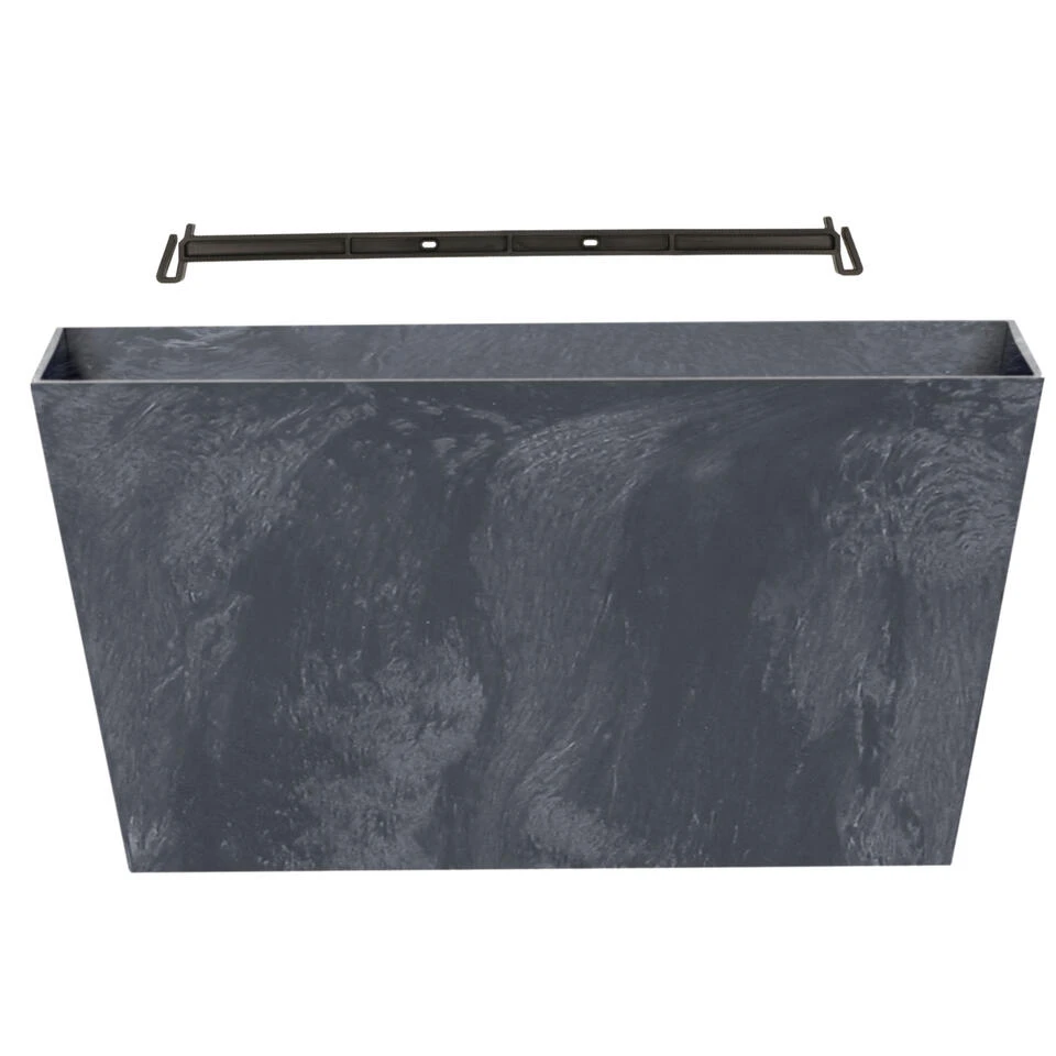 Kunststof bloembakken/plantenbakken rechthoek betonlook 60 cm antraciet grijs. Afmetingen: breedte 60 cm, diepte 32,4, hoogte 30 cm. Inhoud: ongeveer 38,6 liter. Materiaal: kunststof. De bloempotten hebben een gat in de bodem waardoor het overtollige water wegloopt. De potten zijn geschikt voor binnen en buiten gebruik. Indien deze pot buiten word geplaatst kun je zelf gaten boren in de aangegeven plekken.
