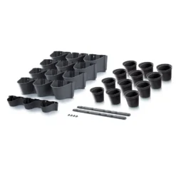 Uw eigen verticale tuin met dit modulaire hangende kunststof plantenpotten systeem. Het modulaire systeem staat toe de potten middels verschillende configuraties te monteren. Dankzij het doorstroomde irrigatiesysteem worden de planten gelijkmatig van water voorzien. In set zitten 12 plantenpotten.