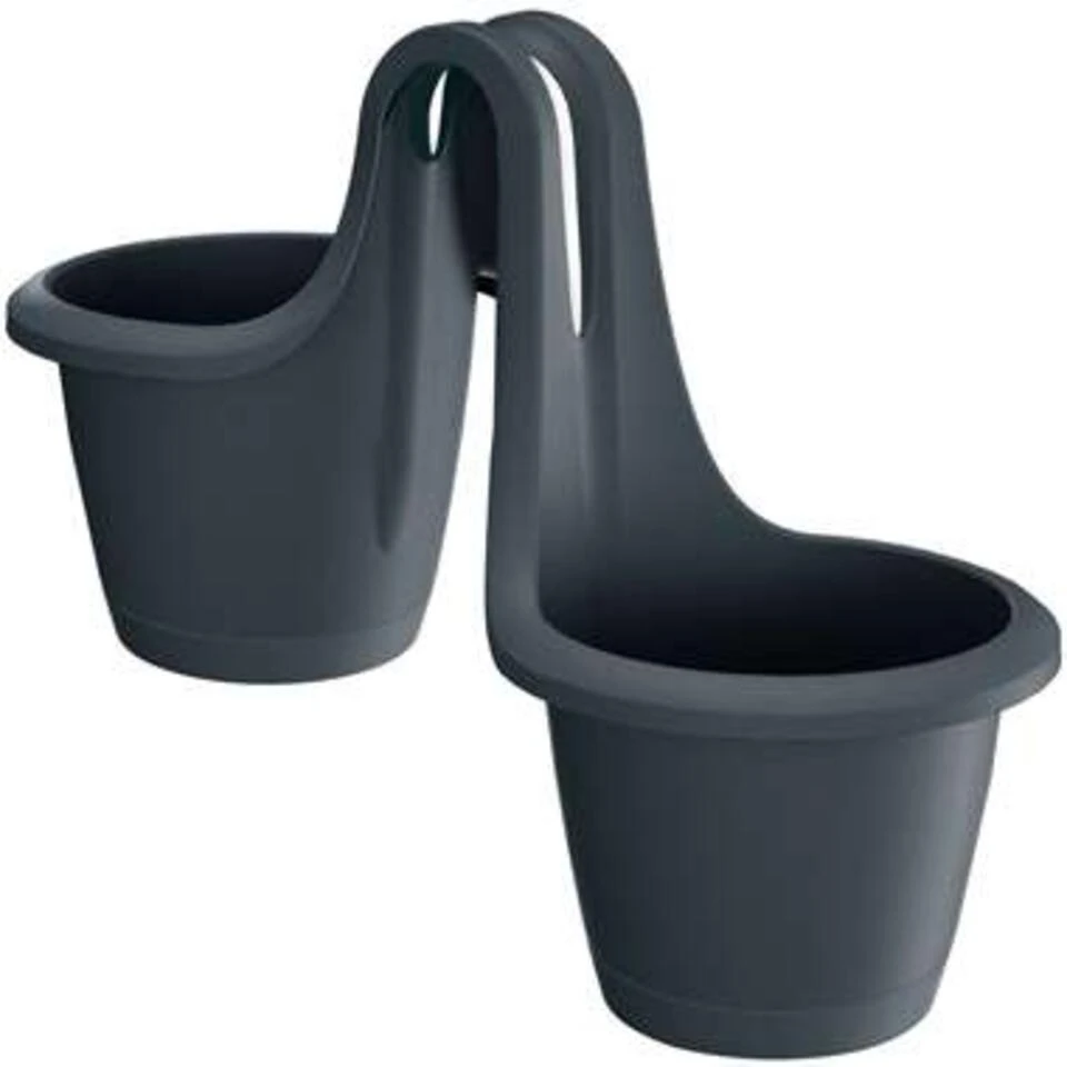 1x Stuks kunststof Respana twins ronde balkon plantenpotten/bloempotten antraciet 2x 2,5 liter.
