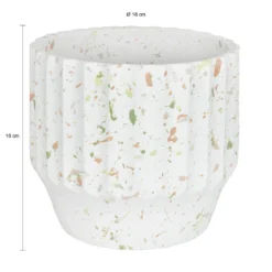 De QUVIO bloempot heeft een binnenmaat van 15,5 centimeter. Dit is een mooi formaat. De pot is niet te groot en opvallend, maar ook zeker niet te klein. Door de witte kleur is de bloempot bovendien eenvoudig te combineren met elk soort plant. Of je nou van een plant met felgekleurde bloemen houdt, of dat je een volledig groene plant kies, alles staat prachtig in deze bloempot.
