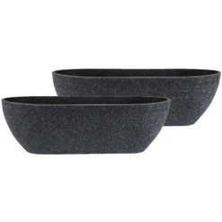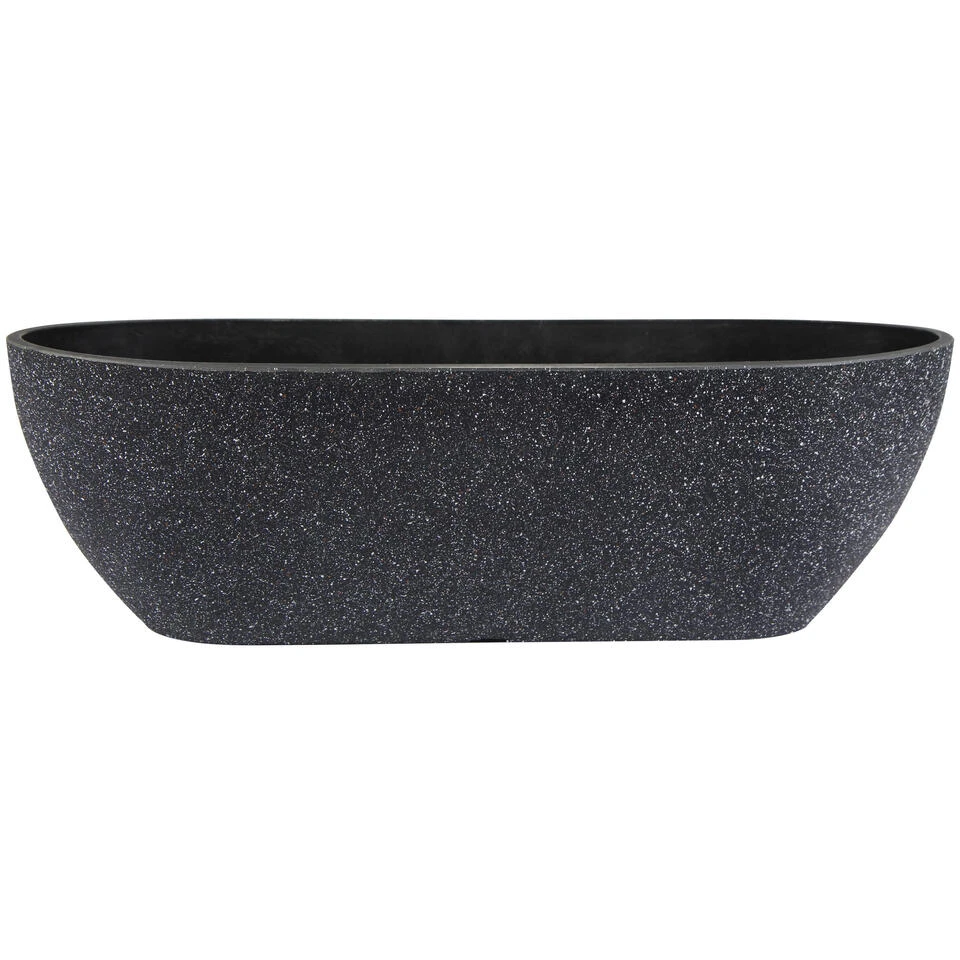 Bloempot/plantenpot balkonbak van gerecycled kunststof en steenpoeder in de kleur zwart met diameter 55 x 16 cm en hoogte 16 cm. Potten voor buitenplanten of kunstplanten. Deze plantenpot voor buiten heeft een stijlvolle uitstraling. Een unieke duurzame mix van materialen dat nu geen afval is, maar een prachtige duurzame bloempot. Een sterke, mooie pot die vriendelijk is voor het milieu en de portemonnee. De pot heeft gaatjes in de onderkant dus een opvangbalkonbak is voor binnen gebruik vereist. Zoeknaam serie voor de balkonbak is Nova concrete zwart. Deze serie potten hebben een eigen drainagesysteem onderin de pot.