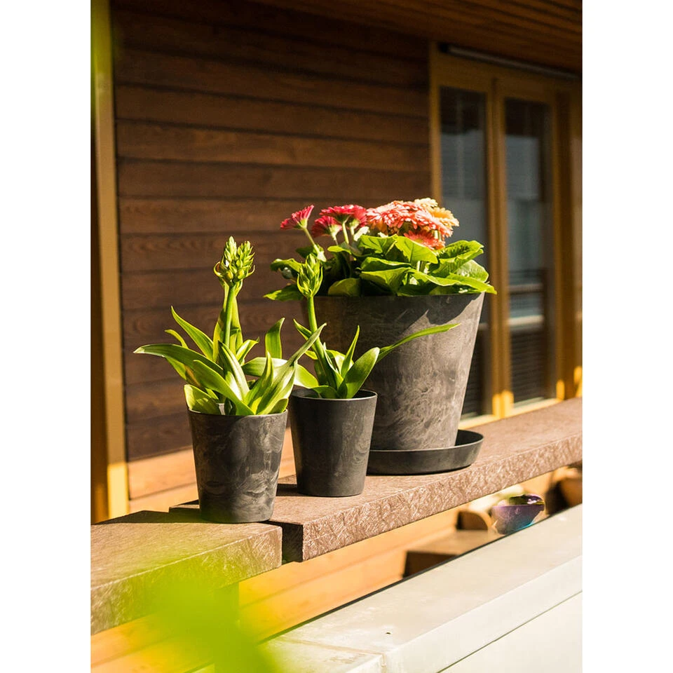 Ter Steege Plantenpot/bloempot – Natuursteen Look – Zwart – D22 X H 20 Cm