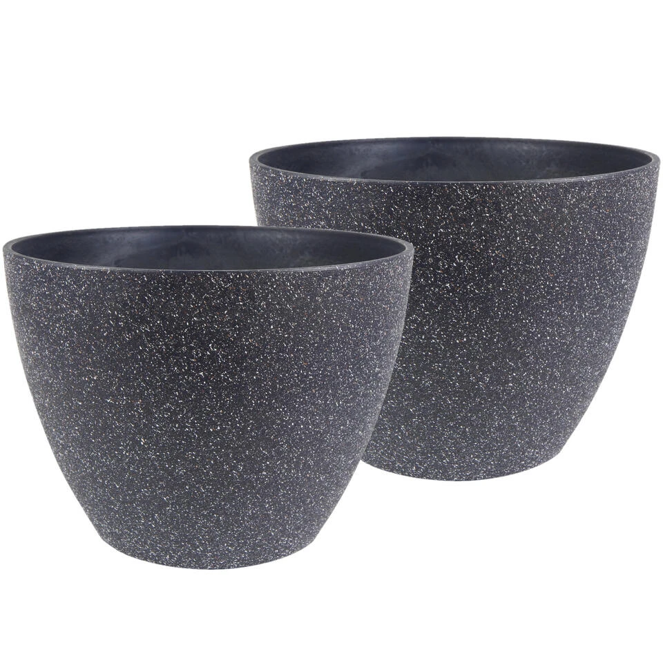 Ter Steege Plantenpot – Zwart – Kunststof En Steenpoeder – 43 X 33 Cm