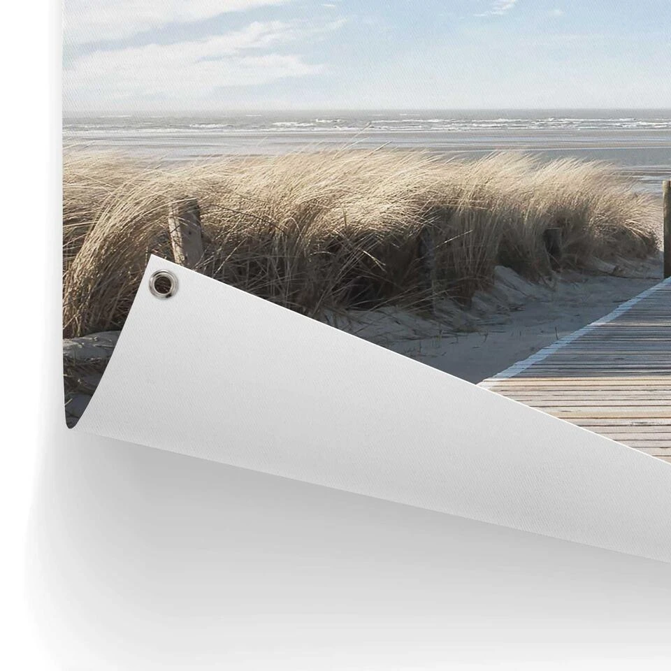 Onze buitenposter is de perfecte aanvulling voor uw tuin, terras of balkon. Deze wanddecoratie maakt van een saaie muur of schutting een echte blikvanger. Tuinposters printen we met een 6-kleuren latex printer op mat polyester canvas. Het doek is daardoor geschikt voor buitengebruik en bestand tegen zonlicht en regen.Je kunt het doek ophangen aan de voorgemonteerde aluminium ogen. Gebruik daarvoor schroeven, spijkers of spanelastieken. (niet meegeleverd). Voor een langere levensduur kan de tuinposter ook buiten onder de veranda of een afdak gehangen worden. De outdoor poster printen we direct na bestelling en wordt binnen 4 werkdagen afgestuurd in een kartonnen doos.Kenmerken