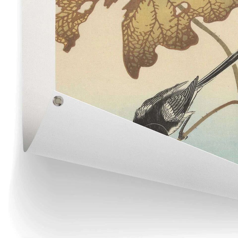 Tuinposter Ohara Koson Kwikstaart Op Lotusplant 80×60 Cm Bruin