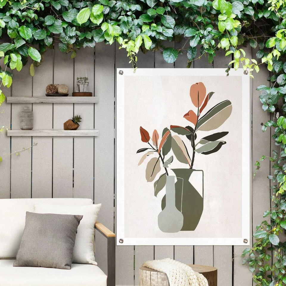 Tuinposter Vaas Met Bloemen 80×60 Cm Groen
