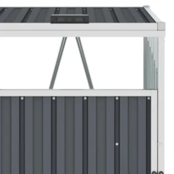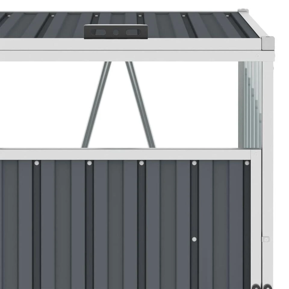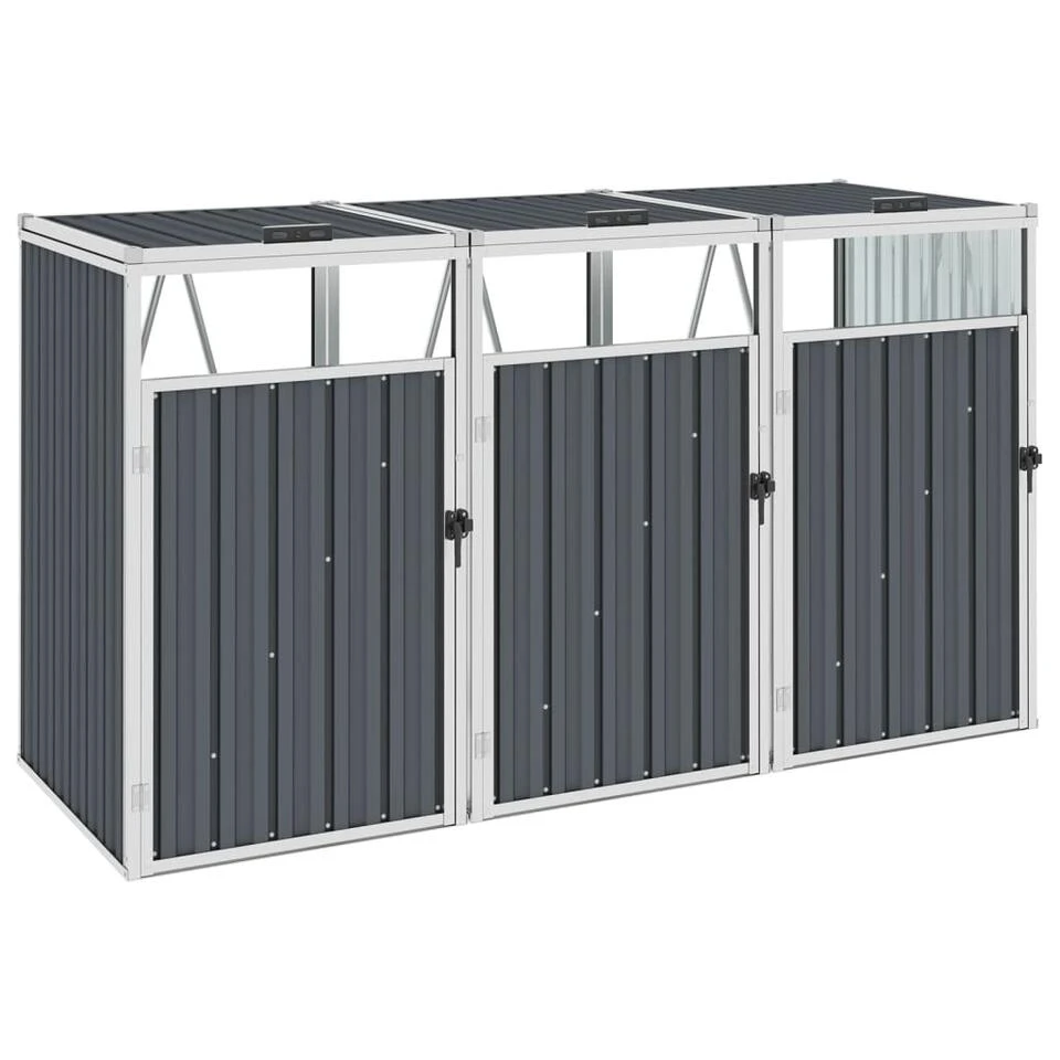 Deze driedubbele berging is gemaakt van stevig gegalvaniseerd staal, waardoor hij zeer stabiel en onderhoudsvriendelijk is. Hij is uitgerust met drie individuele deuren aan de voorkant en zwarte kunststof deurgrepen, zodat de afvalbakken gemakkelijk verwijderd en geleegd kunnen worden. De berging beschikt over drie individuele hefdeksels die kunnen worden geopend om afval eenvoudig weg te gooien.
