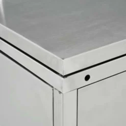De roestvrijstalen afvalbakberging is buitengewoon weerbestendig en duurzaam. De handige ventilatieopeningen zorgen voor luchtcirculatie en voorkomen geurtjes in de berging. Het vergrendelingssysteem zorgt voor een veilige opslag van het afval. Bovendien kan je met de handige deur de afvalbak gemakkelijk in- en uitnemen.