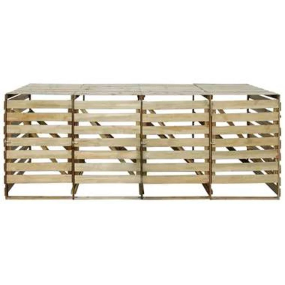 Deze vierdubbele houten containerberging is ideaal om je containers uit het zicht te houden in de tuin.