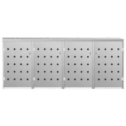 De roestvrijstalen afvalbakberging is buitengewoon weerbestendig en duurzaam. De handige ventilatieopeningen zorgen voor luchtcirculatie en voorkomen geurtjes in de berging. Het vergrendelingssysteem zorgt voor een veilige opslag van het afval. Bovendien kan je met de handige deur de afvalbak gemakkelijk in- en uitnemen.