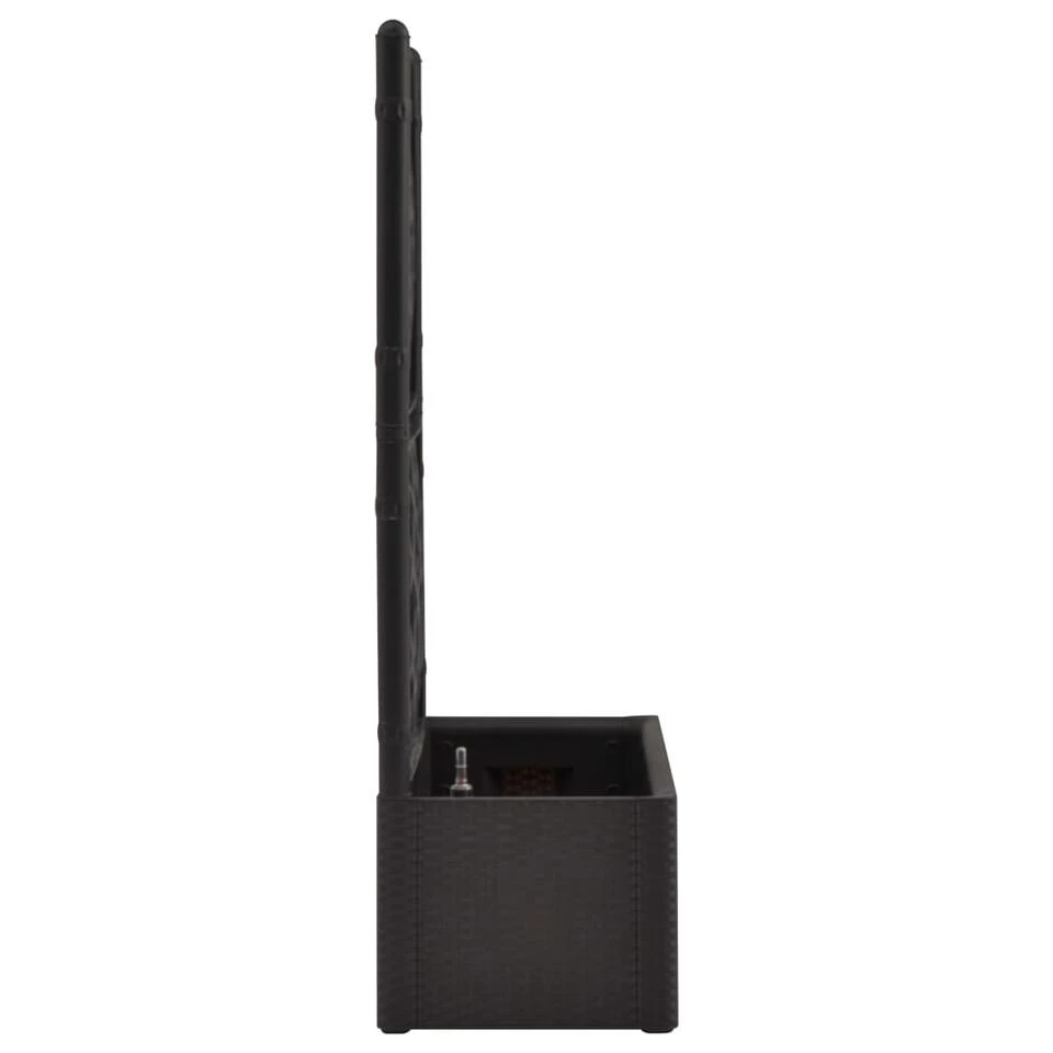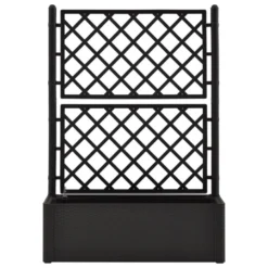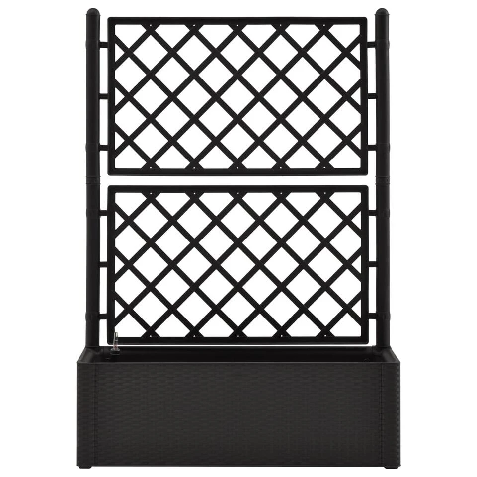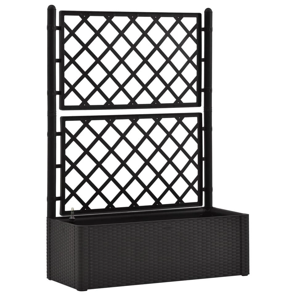 Het ingebouwde latwerk biedt uitstekende ondersteuning aan klimplanten, zoals kruidenplanten, tomatenplanten en bonenplanten. De tuinbak is gemaakt van robuust uv-, weer- en vorstbestendig kunststof en is geschikt voor binnen- en buitengebruik. Het ontwerp heeft een op echt rattan lijkende structuur. Het materiaal is wasbaar en gemakkelijk schoon te maken. Deze plantenbak geeft de planten automatisch water met vocht uit het waterreservoir van 90 liter. De wateroverloopgaten voorkomen dat er water in de bak blijft staan. Een niveau-indicator is ook inbegrepen.