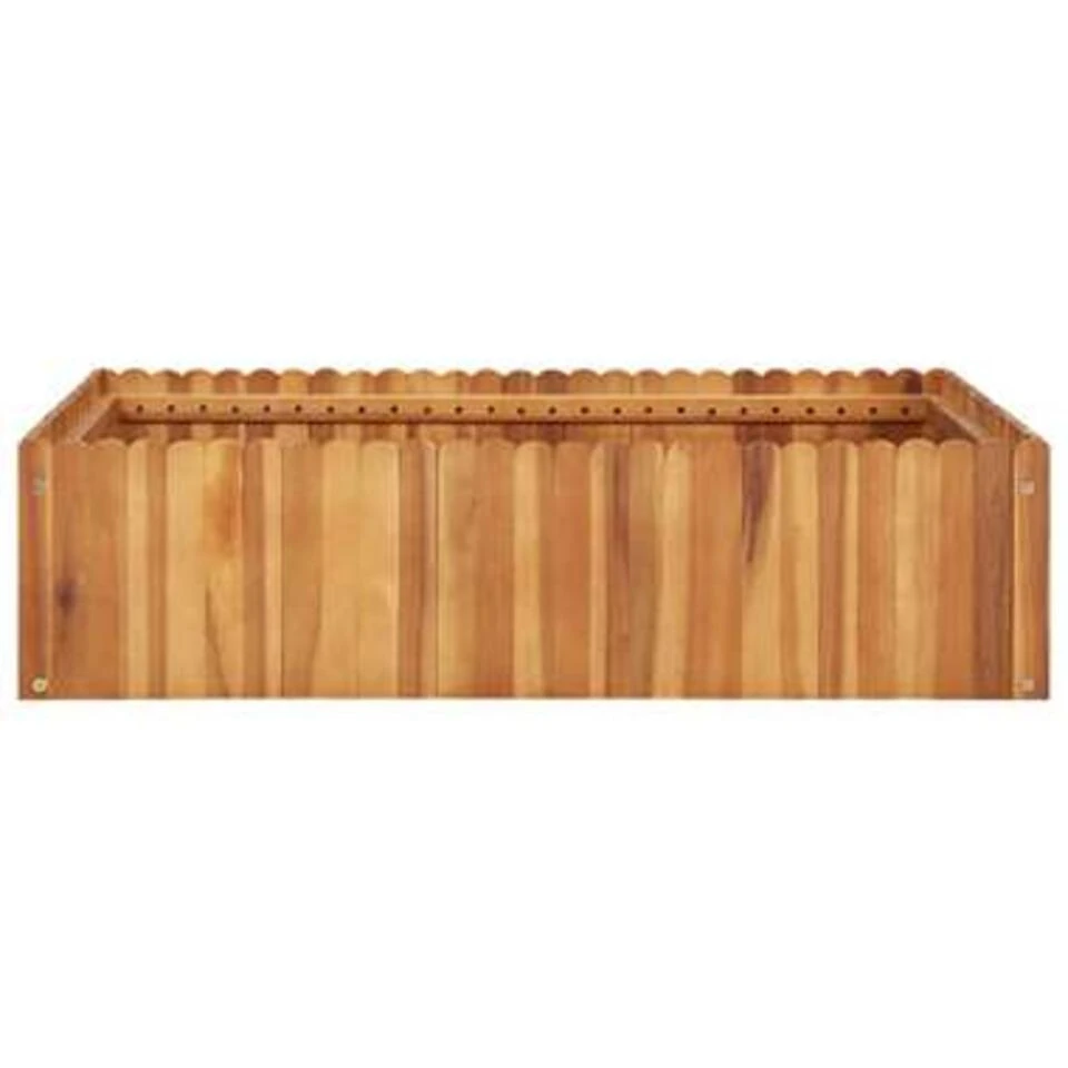 De plantenbak heeft een ingetogen, rustiek ontwerp en voegt een vleugje natuurlijke kleur toe aan je buitenruimte. De plantenbak is gemaakt van massief en robuust acaciahout waardoor hij weerbestendig is en geschikt is voor buitengebruik. De bodem van de bak is gelat waardoor de aarde in de bak blijft maar water wel weg kan lopen.