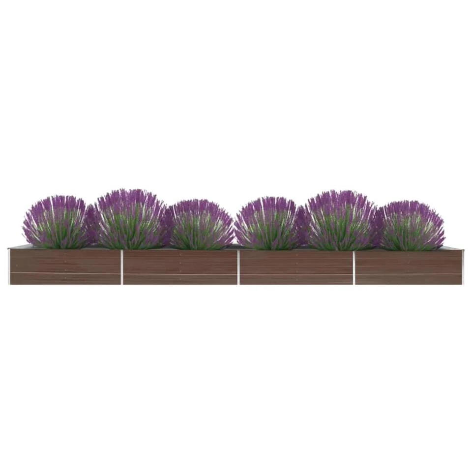 De verhoogde plantenbak is diep en breed genoeg om een grote hoeveelheid grond vast te houden en biedt voldoende ruimte aan planten, groenten, kruiden en bloemen. De bak is gemaakt van robuust gegalvaniseerd staal en is weerbestendig en dus zeer praktisch voor gebruik buitenshuis.