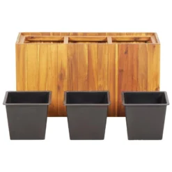 Deze plantenbak is gemaakt van massief acaciahout met een natuurlijke olieafwerking en is weerbestendig en daarom zeer praktisch voor gebruik buitenshuis het hele jaar door. De plantenbak is diep en breed genoeg om een grote hoeveelheid grond op te nemen en biedt voldoende ruimte aan je planten. De drie meegeleverde kunststof potten maken het mogelijk om je bloemen, kruiden, groenten etc. eenvoudig te rangschikken.