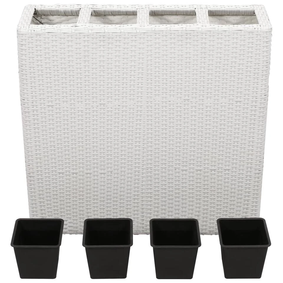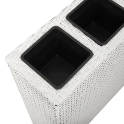 Deze plantenbak is gemaakt van duurzaam, waterbestendig rattan en is de perfecte aanvulling op je buitenruimte. De strakke weefstructuur zorgt voor een gladde afwerking en goede stabiliteit. De plantenset bestaat uit 4 kunststof potten waardoor de set een lange levensduur heeft. Je kunt allerlei planten en bloemen netjes in de potten plaatsen.
