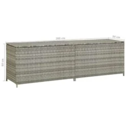 De box heeft een grote inhoud en is dus groot genoeg om tuinartikelen op te slaan zoals: meubelkussens, dekens, zwembadspeelgoed en tuinspullen. Deze opbergbox is gemaakt van gepoedercoat stalen frame en handgeweven poly rattan, die duurzaam en roest- en weerbestendig is. Hij heeft een voering die de inhoud tegen stof en vocht beschermt. Dankzij de verhoogde voeten zorgt deze opbergbox voor een goede luchtcirculatie en houdt hij de inhoud droog en schoon. Daarnaast zorgt het gasveermechanisme ervoor dat je het bovendeksel eenvoudig kunt openen en sluiten. Hij is gemakkelijk schoon te vegen met een vochtige doek.