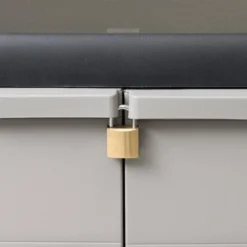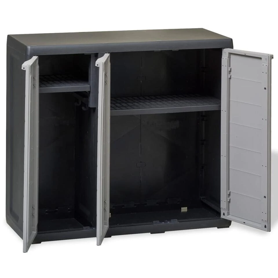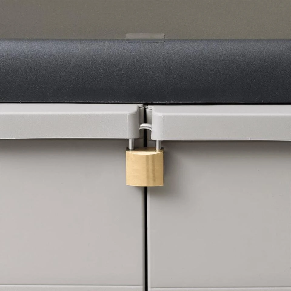 Deze TÜV-GS gecertificeerde kast is gemaakt van stevig en duurzaam polypropyleen (PP). De opbergkast heeft geventileerde schappen die versteld kunnen worden om ruimte te bieden aan spullen van verschillende groottes. De tuinkast kan afgesloten worden met een hangslot voor extra veiligheid (het slot wordt niet meegeleverd).