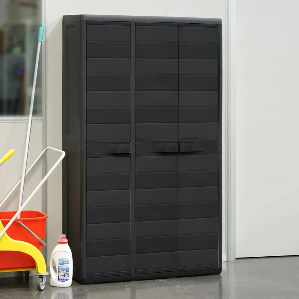 Onze hoogwaardige opslagkast is ideaal voor het opbergen en organiseren van je huishoudelijke spullen, gereedschap en andere spullen in de tuin of op het terras, enz. Deze kast past bij iedere inrichting dankzij het tijdloze ontwerp.