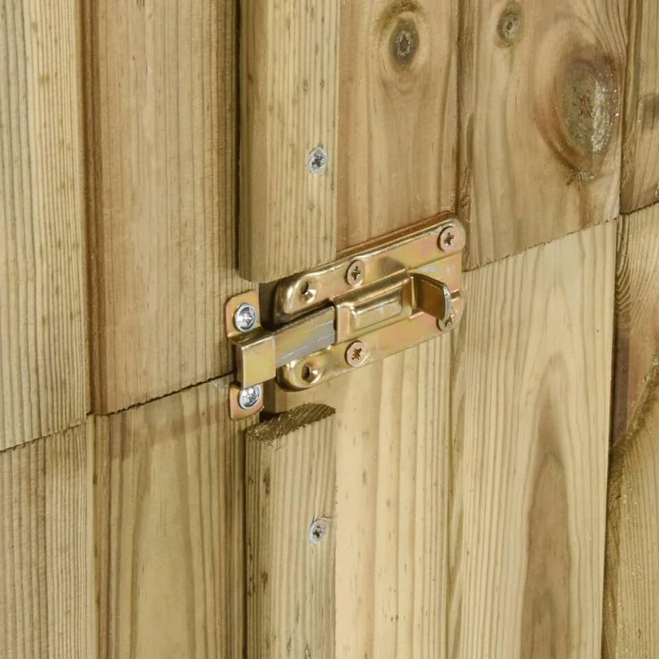 Deze opslagschuur is gemaakt van grenenhout dat milieuvriendelijk is. Het geïmpregneerde grenenhout is slijtvast en weer- en rotbestendig. Bovendien is het dak bekleed met waterdicht bouwkarton.